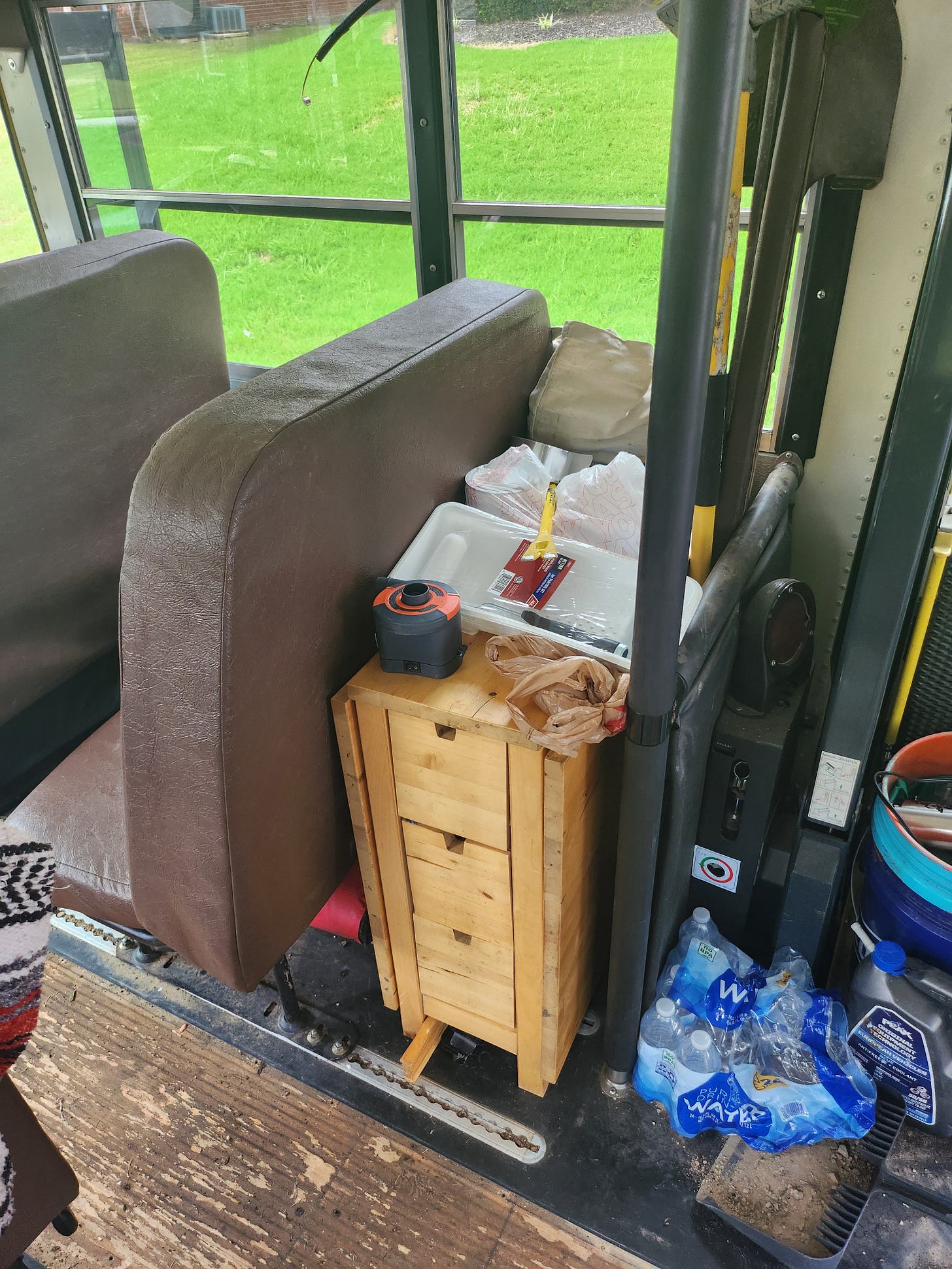 When we got back to Atlanta (I promise there’s a trips rekap koming soon, but Detroit is already posted on substack!), we hosted a BLBus Build Day in front of the West End Mall. With this publik facing get-together, the Black Land Bus reached new people. On this day we painted the exterior, started waterproofing the back interior, and gave the BLBus his first piece of furniture!. A lil handy folding table and drawer set now lives in the BLBus where the medicinal herb garden will one day go.
