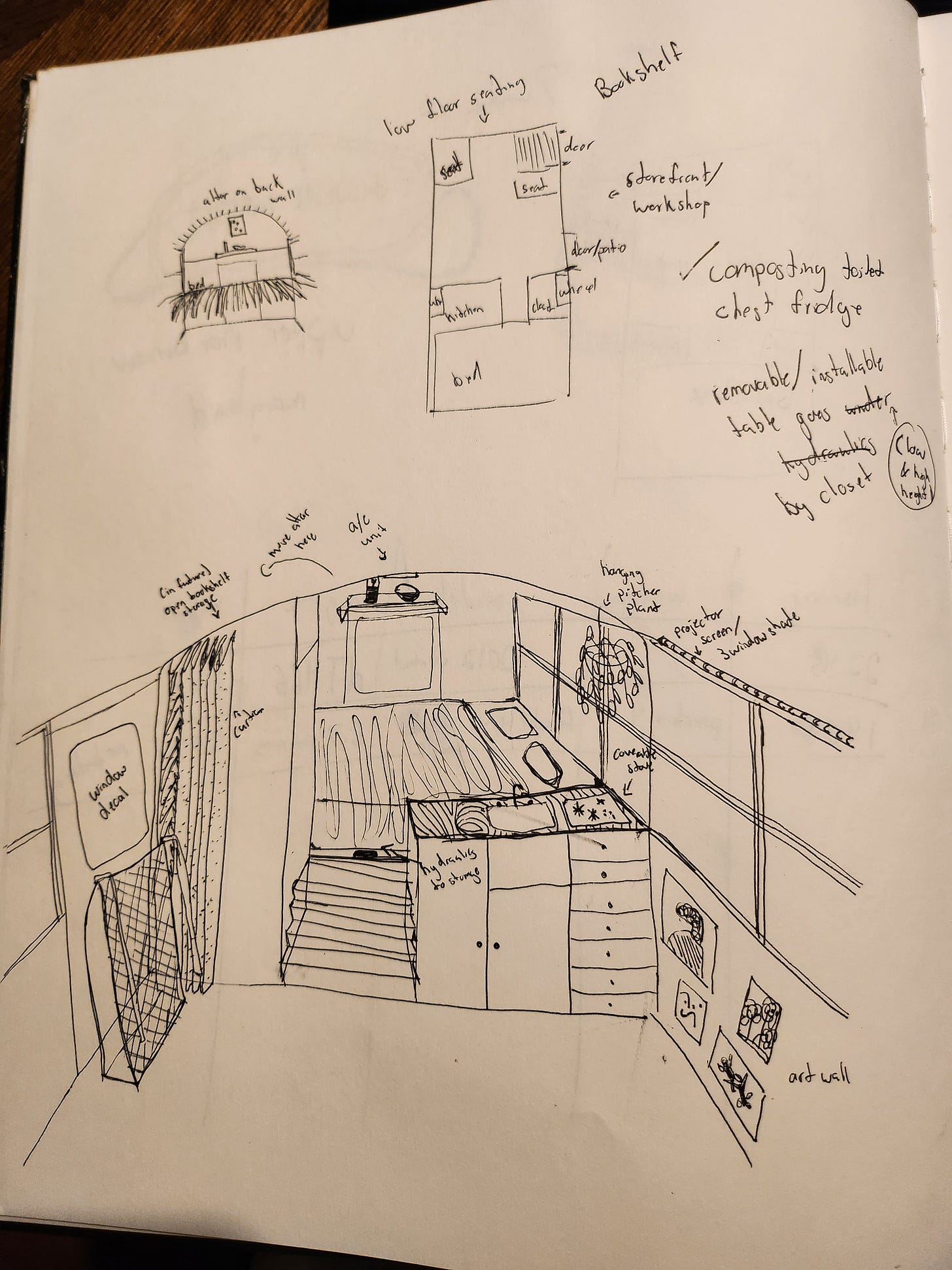 We got to more waterproofing, sent out more postcards, and harvested beans before mechanik issues put a hiatus on the show (details in last post), but follow @BlackLandBus on substack to support (paid or unpaid both appreciated) & know when he exits the mechanik shop. When we do resume, we will be sekonds away from starting to build up the self sustainable living space, garage, french cleats, kitchen, and komposting toilet.