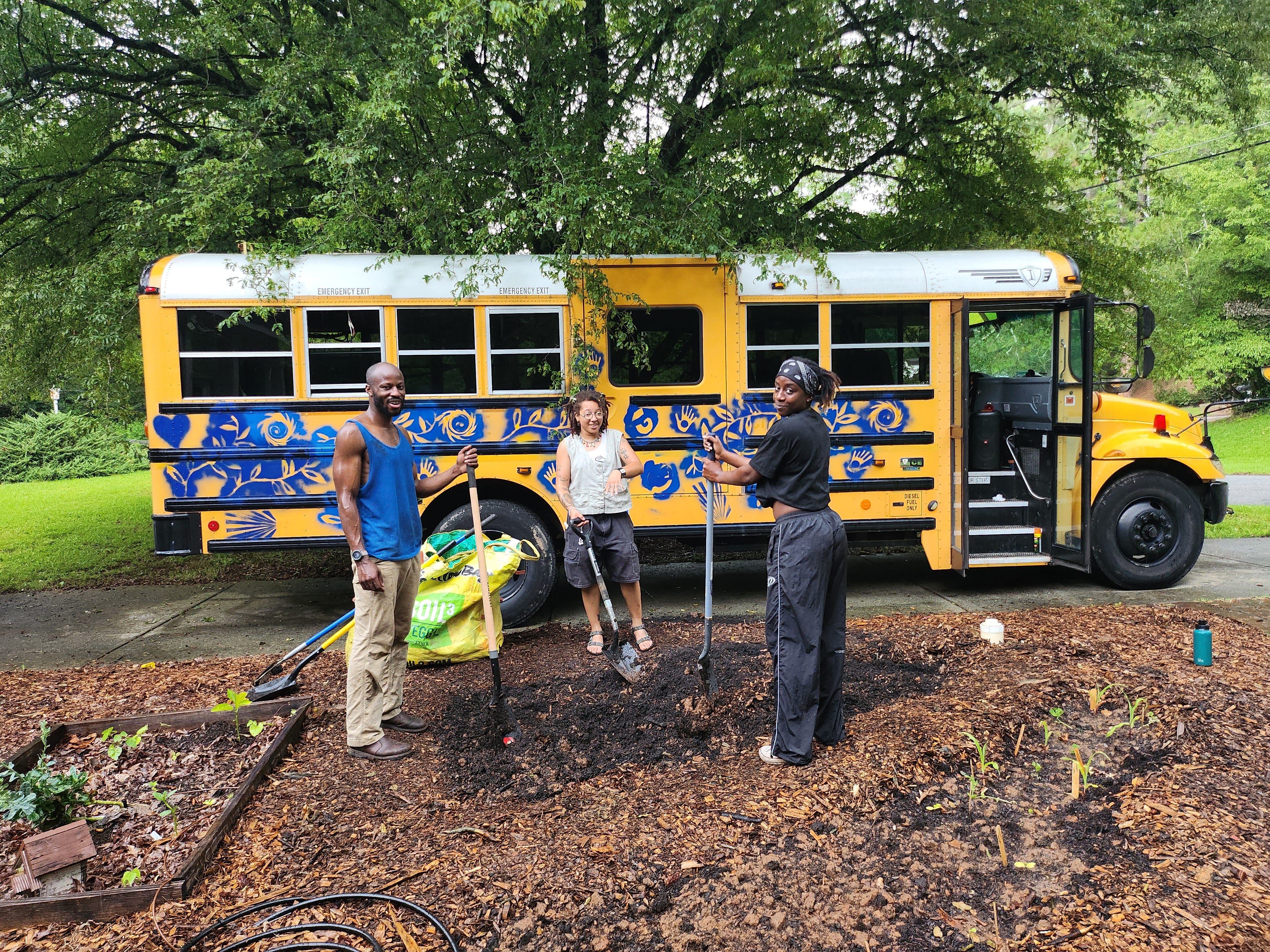 For those yet to have participated in this dream, The Black Land Bus is a tool to build infrastrukture on our lands & skills in our komunities. For the past year we’ve been building a mobile workshop space that will have the tools necessary to build for black and indigenous farmers akross the deep south. The BLBus will fokus on natural building techniques to kreate buried greenhouses, klay ovens, kompost systems, earthen rainwater harvesting systems, and whatever farmers/komunitites need to thrive. This land projekt on wheels sprouted from South Atlanta’s vision for a komunity kitchen as opposed to Cop City.